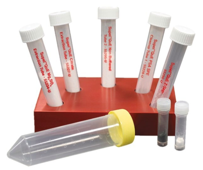 Supelco有一系列的管和離心管,含有預置量的鹽和SPE吸附劑,能夠支持現今最常用的方法。