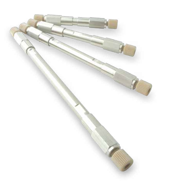 Shim-pack Diol 系列是一種凝膠過濾色譜(GFC)柱。GFC根據它們的分子量大小,通過使用親水性填料和水的流動相用于分離水溶性高聚 合物如多糖,蛋白質和核酸。 Shim-pack Diol 系列將多孔球形硅膠與二醇基進行化學鍵合。由于含有親水性羥基基團,Shim-pack Diol系列可以在快速GFC蛋白和生物 化學的分析過程中使用,并提供更尖銳的峰形(如酶)